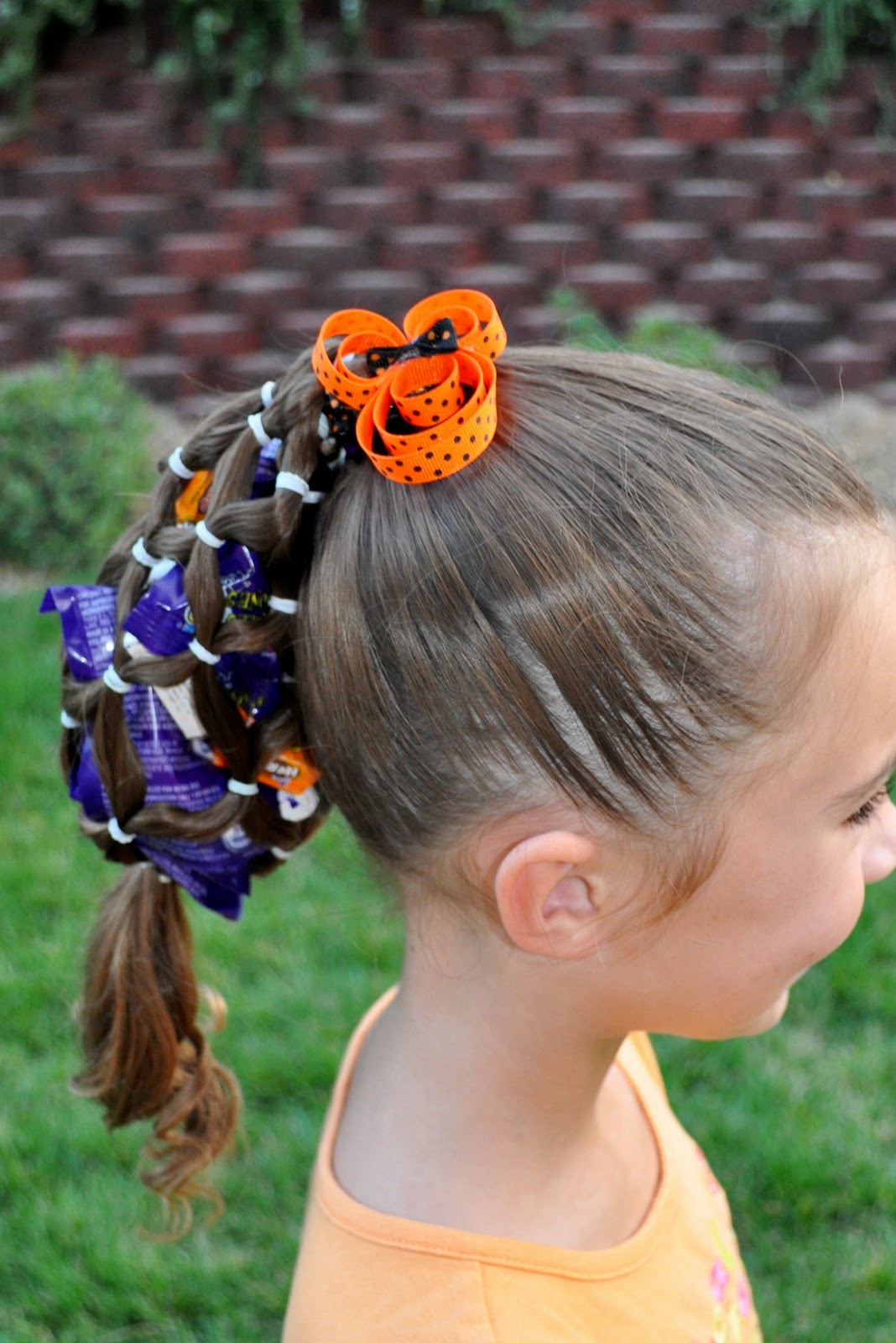 Another fun look is the 3D Netting Ponytail. Simply tie all your ends together at the boom of your ponytail and add a couple fun Halloween clips.